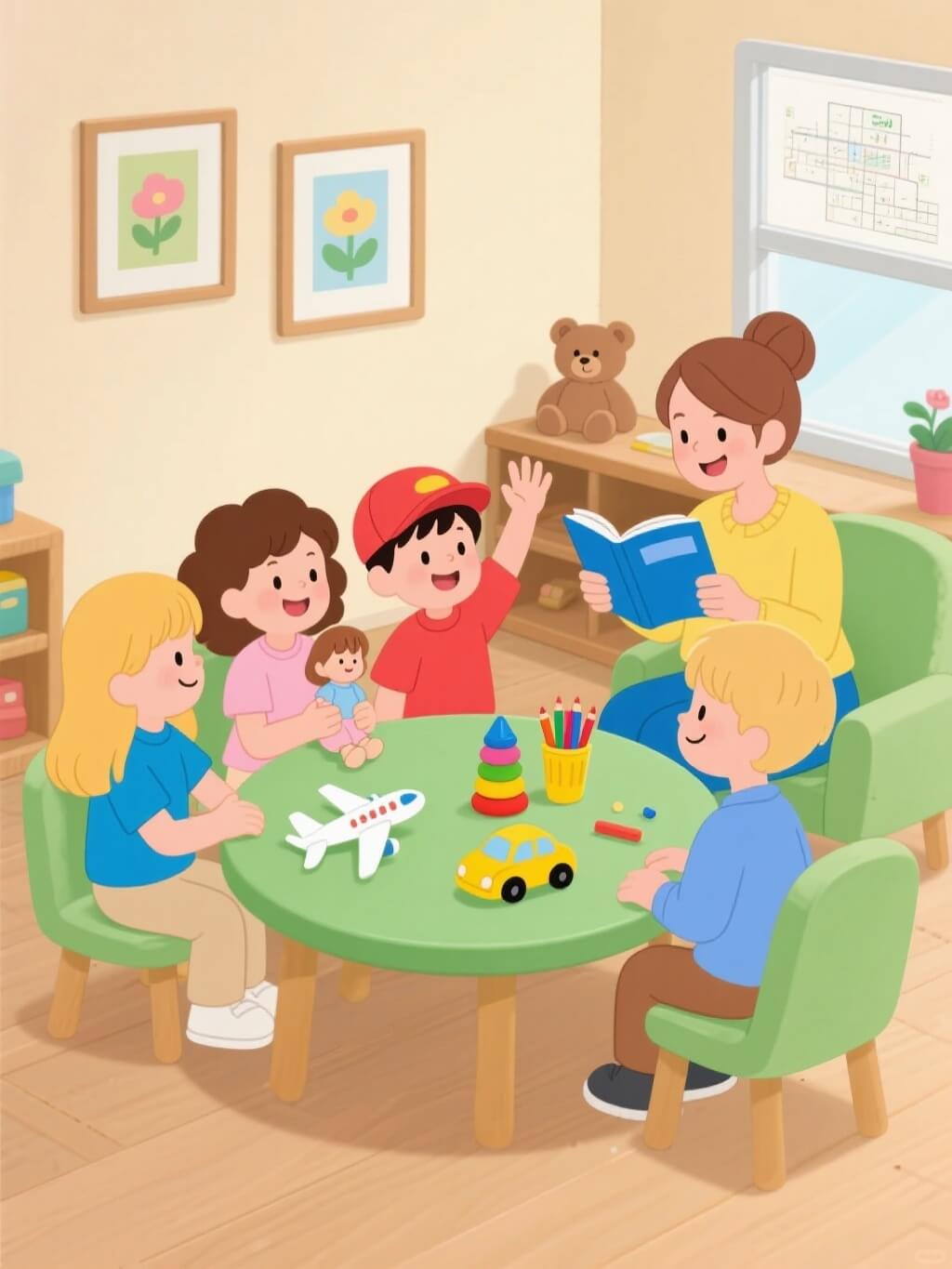 What’s the teacher holding? a blue book