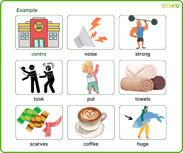 Look and read. Choose the correct words and write them in the blanks. There is one example.