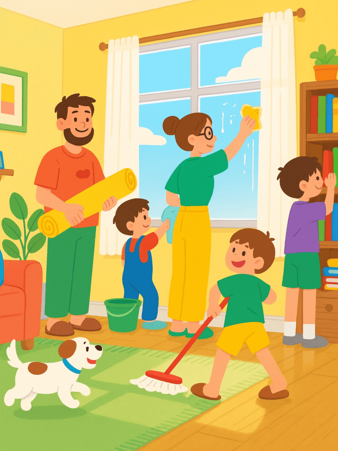 The family is cleaning.