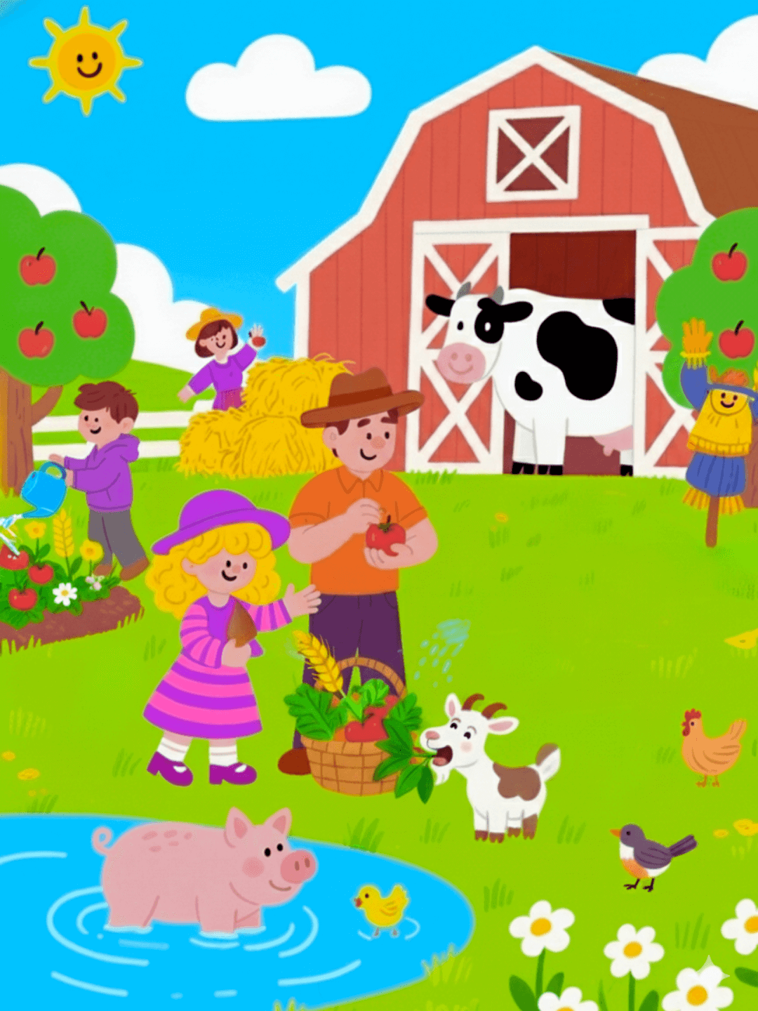Emma opened the basket to get the red apples. Then, she heard a sound - 'rustle, rustle'! She looked around. 'Mum! Something's in our basket!'
