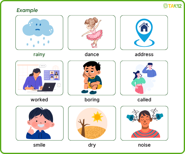 Look and read. Choose the correct words and write them in the blanks. There is one example.