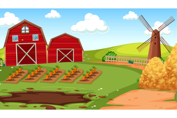 A farm is a place in the countryside. It is in a town or a city. A farm has got big green fields and many animals. A person who on the farm is called a farmer. Farmers work hard every day. grow vegetables like carrots and potatoes, and fruits like apples and oranges. On the farm, there cows, goats, sheep, and chickens. Farmers feed the animals in the morning and in the afternoon. You can see big buildings on a farm the animals sleep and farmers keep food. It is fun and interesting to visit a farm.