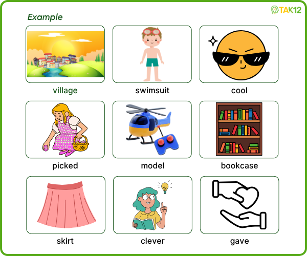Look and read. Choose the correct words and write them in the blanks. There is one example.