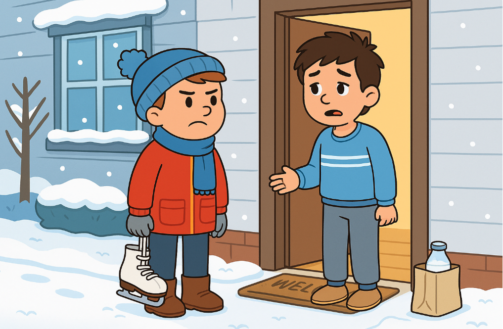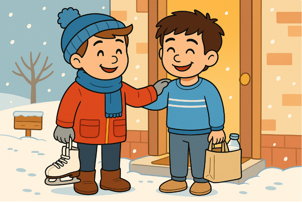 On Saturday morning, Paul was very happy. He and his best friend, Charlie, wanted to go ice skating at the lake in the park. Paul put on his warmest coat and sent a message to Charlie.