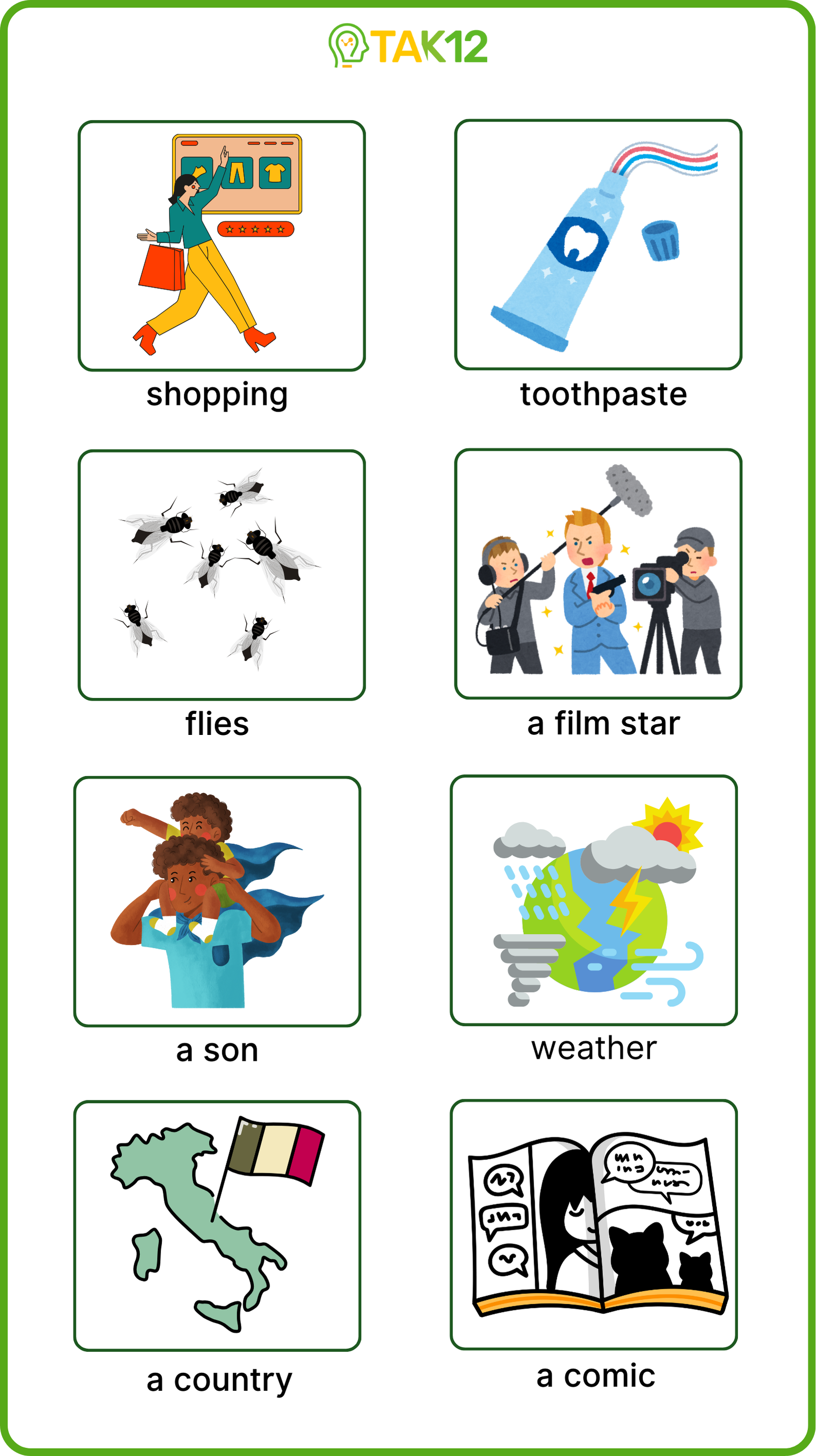 Look and read. Choose the correct words and write them in the blanks. There is one example.