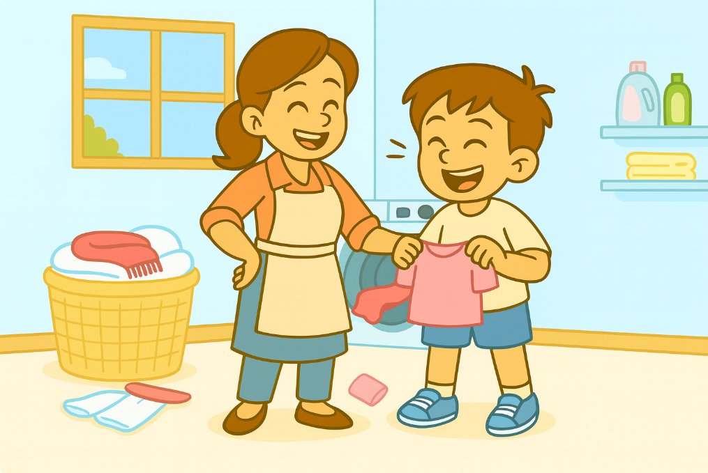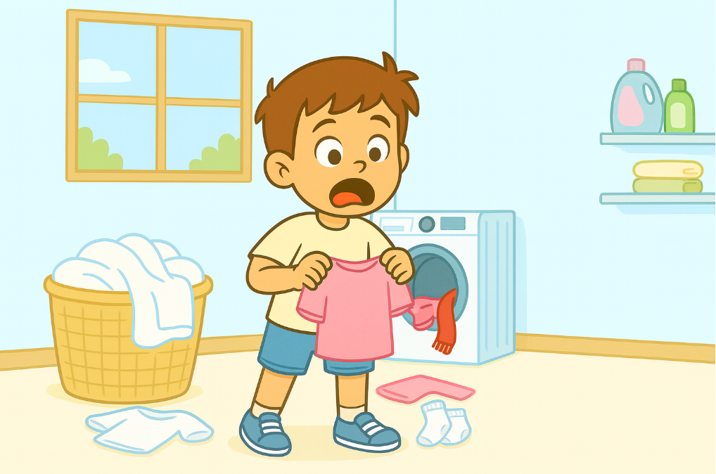 Tom laughed too. It was a very funny mistake. He helped Mum hang the pink clothes outside in the sun.