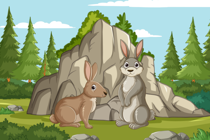 Rabbits are small animals. They can white, black, brown, or grey. Rabbits have got very long ears and short, round tails. They have got strong back legs to them jump. You can often see rabbits in fields and forests. They live in a big home under the ground. They come out early in the morning or late in the evening to eat. During the day, they hide other animals. Rabbits eat grass, carrots, and other vegetables. They use two long front teeth to cut food. Many people keep rabbits as pets they are quiet and friendly.