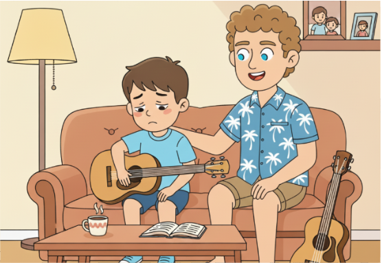 His dad smiled. 'Your teacher didn’t say ‘never’; he just said ‘you need more practice.’ You’re not in the band now, but you can practice and get better!'