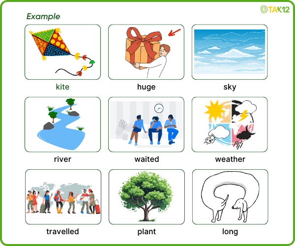 Look and read. Choose the correct words and write them in the blanks. There is one example.