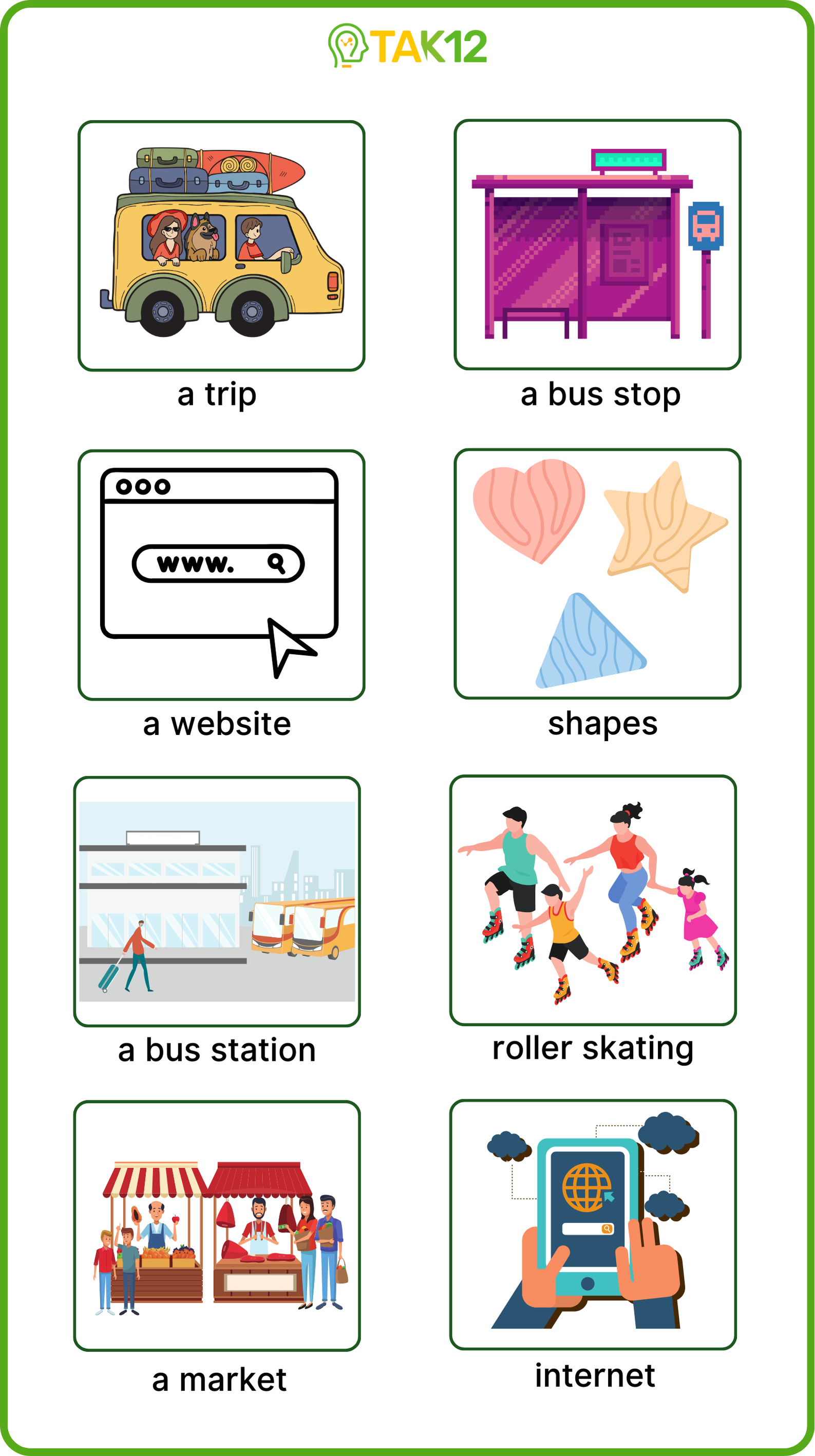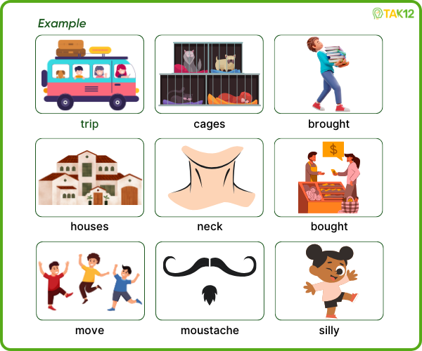 Look and read. Choose the correct words and write them in the blanks. There is one example.