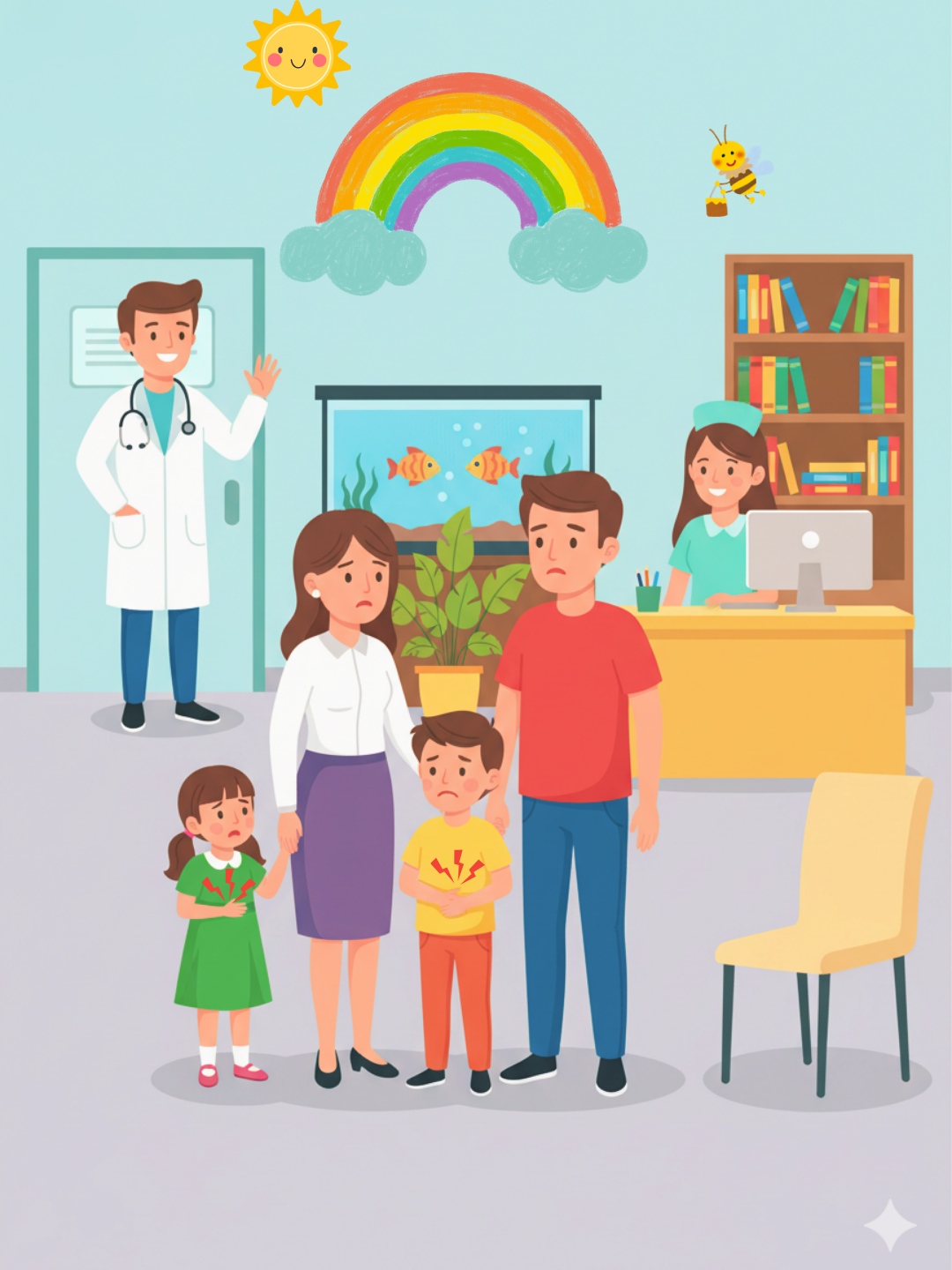 What is the bee next to? It's next to a rainbow.