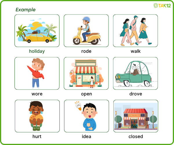 Look and read. Choose the correct words and write them in the blanks. There is one example.