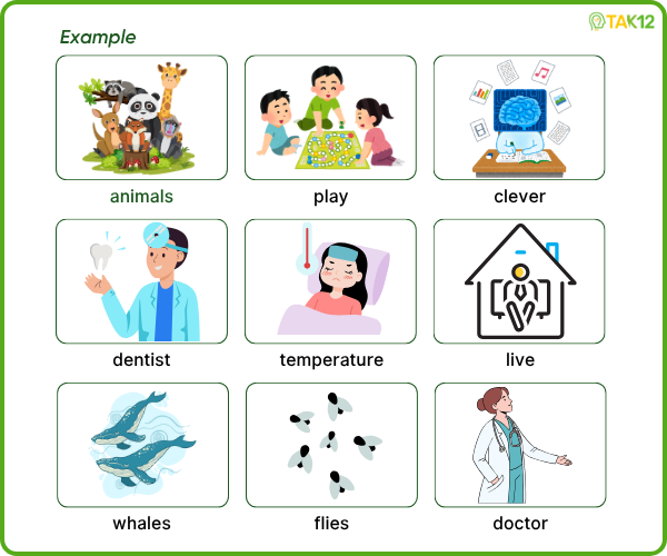 Look and read. Choose the correct words and write them in the blanks. There is one example.