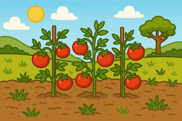 Many people think tomatoes are vegetables, they are fruits. tomatoes are red. They can sometimes be yellow or green. Some are big and round, and some are small like grapes. Tomatoes grow on a plant and need a lot of sun to become sweet and red. People can grow tomato plants in a garden or even in a box a balcony. You can eat tomatoes in salads, soups, and sandwiches. You can drink tomato juice . Tomatoes are good for your body. They help you stay strong. You can eat every day.