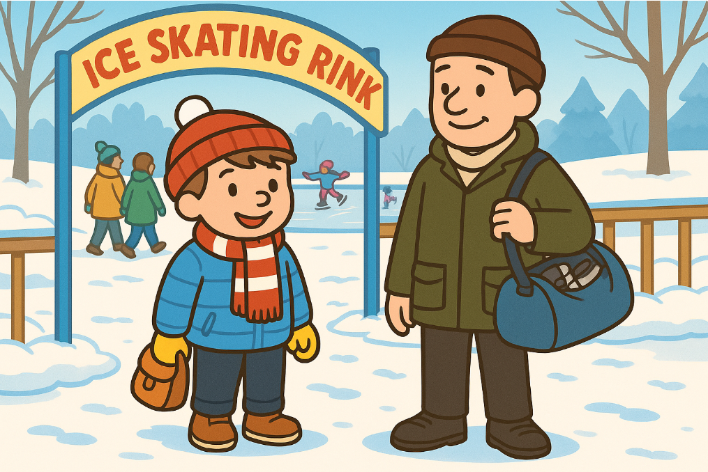 On Friday, Peter and his dad went to a fun park in the city centre. Peter loves ice skating and waited for the trip all week.