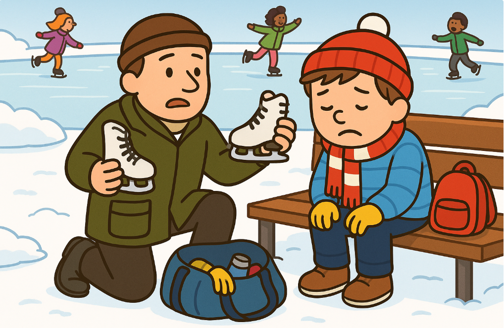 'Oh no, Peter,' said his dad. 'I’ve made a mistake. I brought two of my skates and forgot your skates at home.'