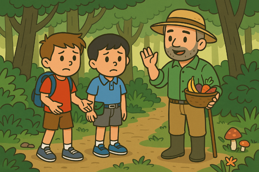 'Hey, boys,' a man called to them. A man came out from behind the trees. He was a farmer who lived near the forest.