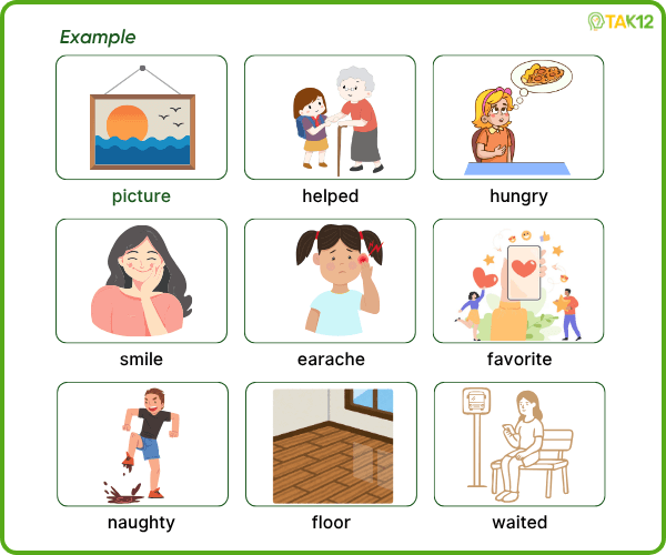 Look and read. Choose the correct words and write them in the blanks. There is one example.