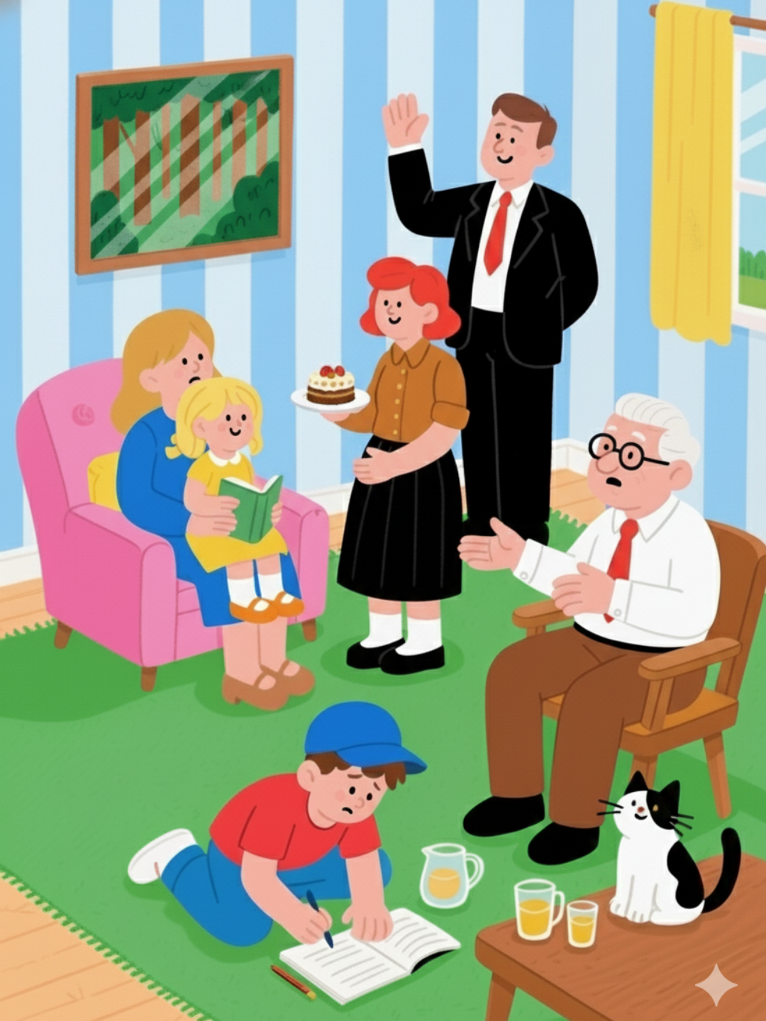 Look at the pictures and read the story. Write some words to complete the sentences about the story. You can use 1, 2 or 3 words.