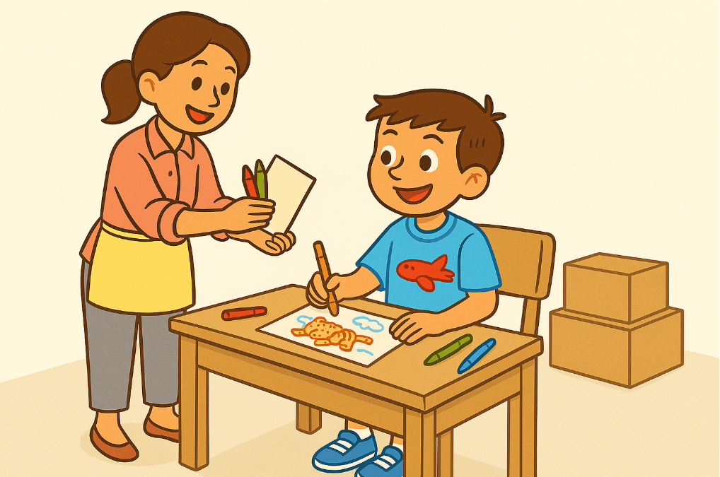 4. With the crayons in his hand, Sam to think about his new drawing.