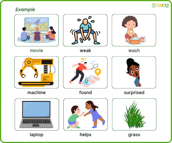 Look and read. Choose the correct words and write them in the blanks. There is one example.