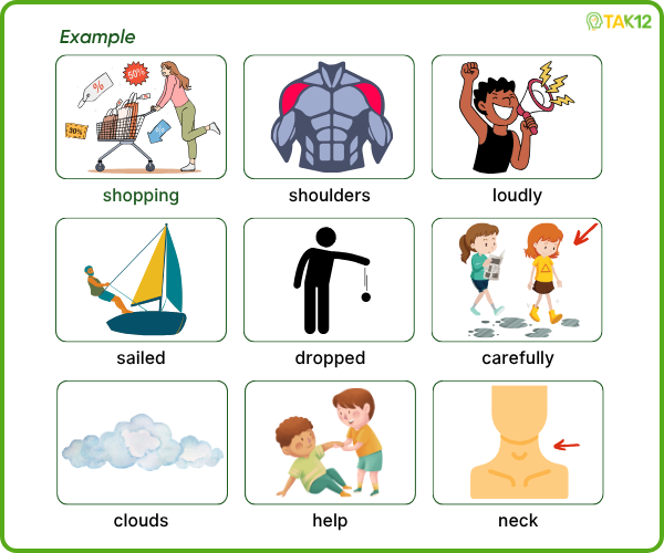 Look and read. Choose the correct words and write them in the blanks. There is one example.
