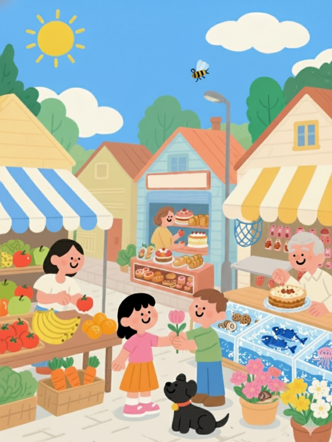Lily ran to get everything: some fruits near the elevator, some vegetables at her feet and a big bottle of tea by the wall. She put them back in the woman’s bags.
