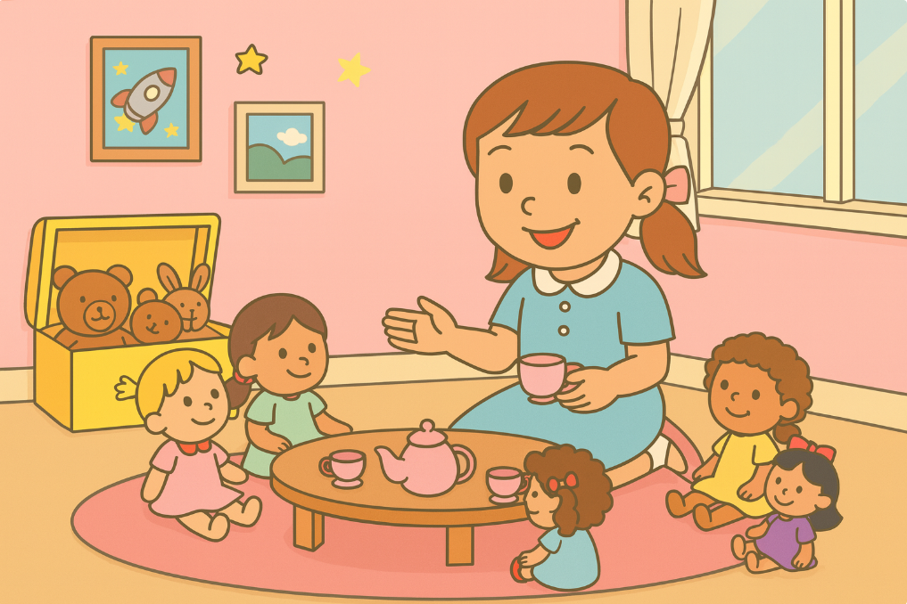 In the old home, Clara had a small, nice place in her bedroom. The walls were pink, and there was a big toy box with her dolls and small cups. She liked to sit there and play tea party with them every afternoon.