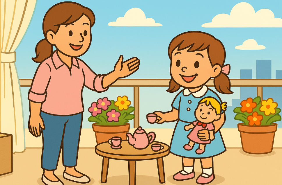 Her mum came in and smiled. 'You’re right. This room doesn’t have a place for your dolls,' she said. 'But it has a fantastic thing outside!'
