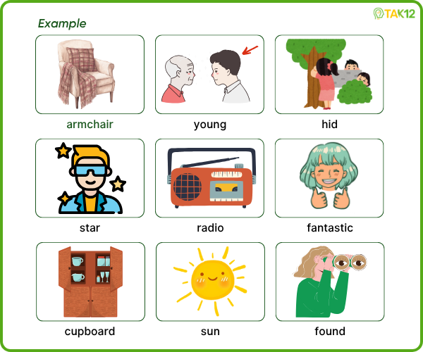 Look and read. Choose the correct words and write them in the blanks. There is one example.