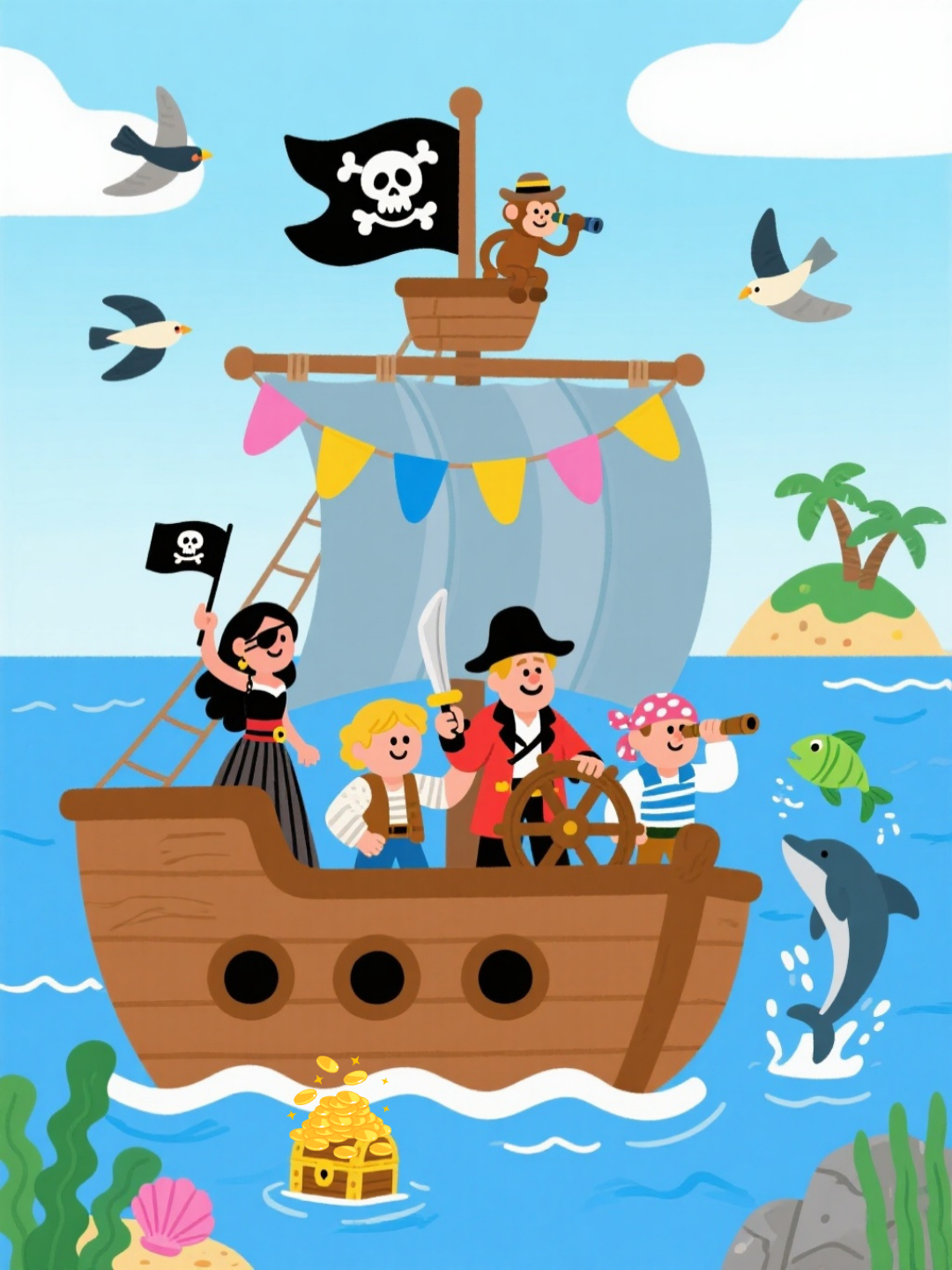 Who is driving the ship? The man in the red coat is sailing the ship.