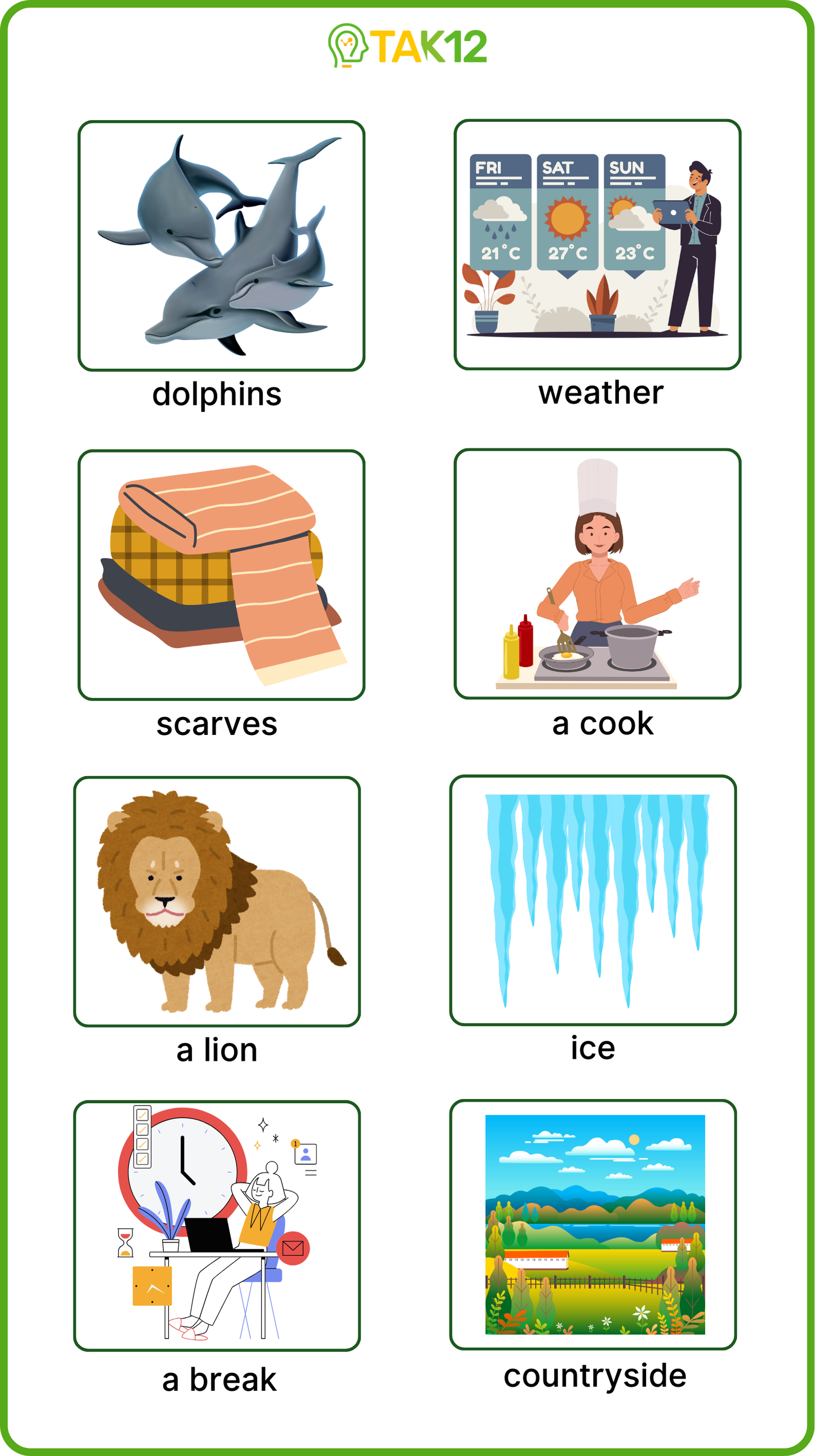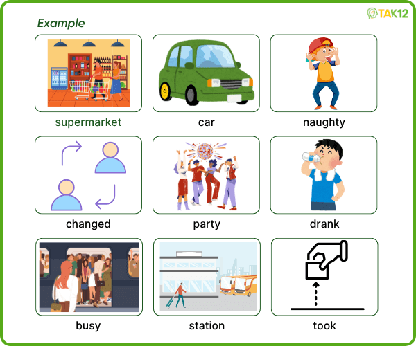 Look and read. Choose the correct words and write them in the blanks. There is one example.