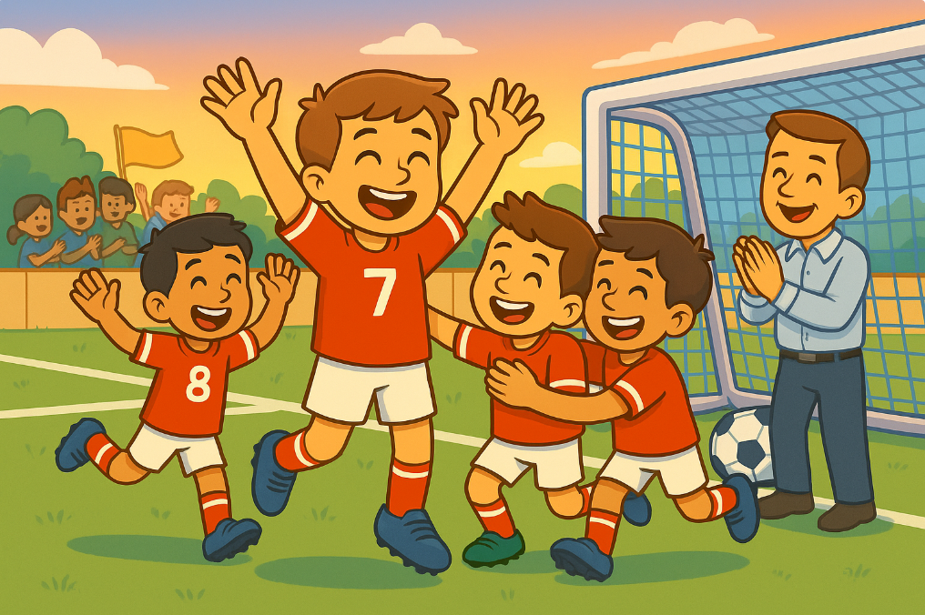 All his friends shouted and laughed. They jumped up and high-fived each other. They were so happy when they were the winners!