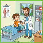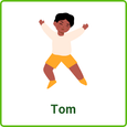 Thay cho "draw lines", em hãy nghe và kéo từng ô tên vào ô trống trên hình người được nói tới.