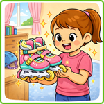 5. Colour the DVD on the shelf of the TV table -