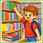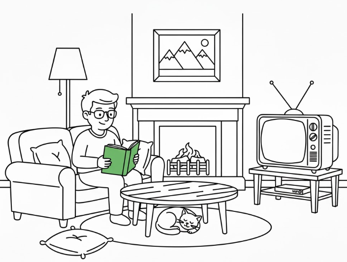 Example: Colour the book that the man is reading - green