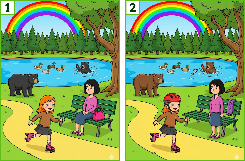Look at the pictures. They look the same, but some things are different. There is one example.