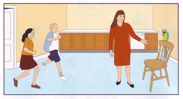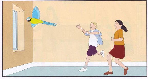 First, Mary taught the parrot to say 'Pasta' and 'Hello'. Then he learned to say 'Mary', 'Yes', 'No' and 'Lunch'! Then Pasta learned more words. On Saturday, Mary's mother opened the living room door and asked Mary and her younger brother, Fred, 'What do you want to eat for lunch?' Fred shouted, 'Pasta!' The parrot was there with them and he thought, 'Oh no! Fred wants to eat me,' and he flew outside.