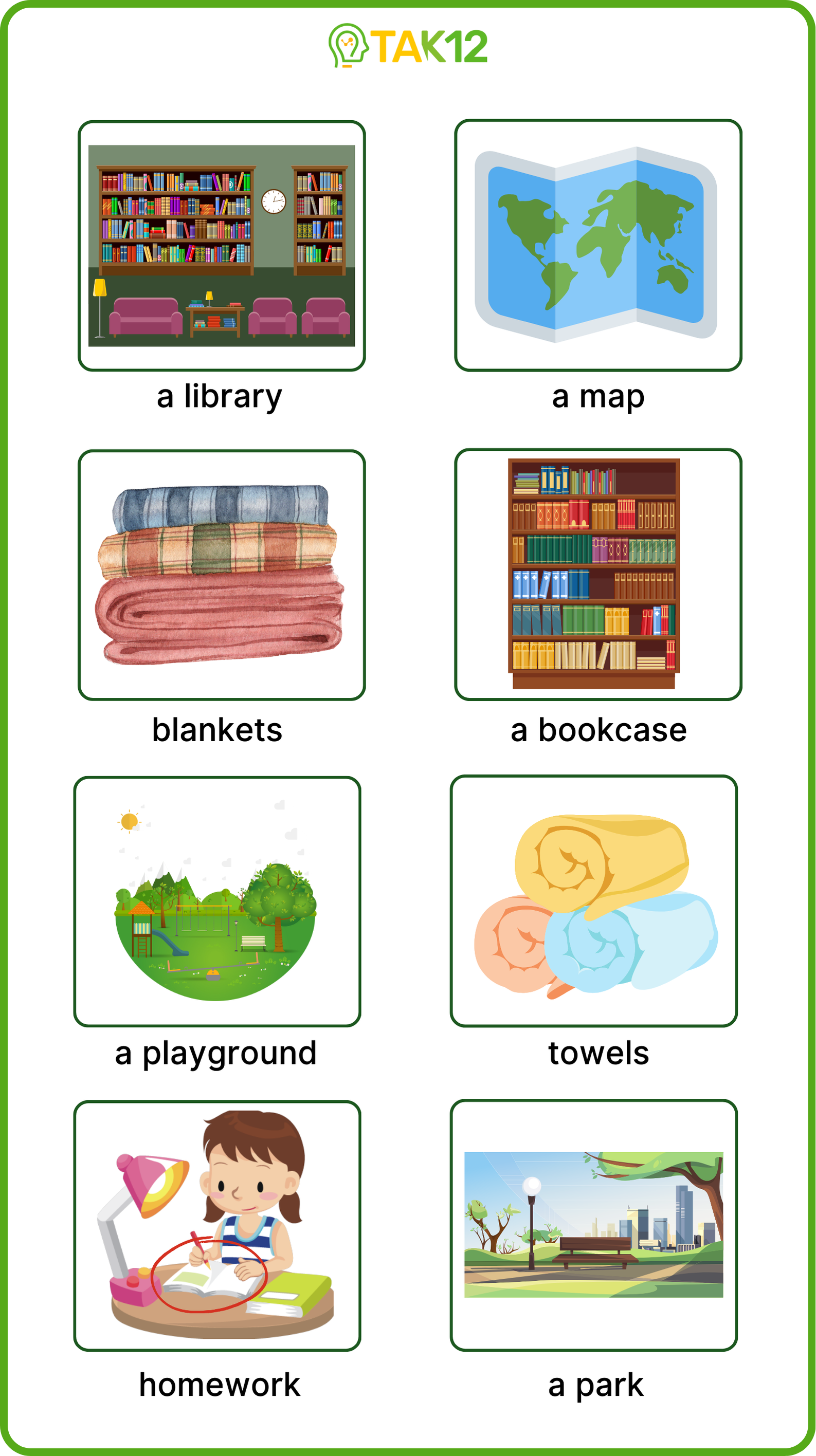 Look and read. Choose the correct words and write them in the blanks. There is one example.
