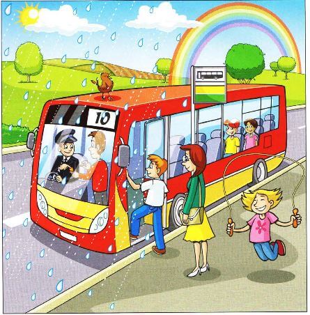 4. What is the girl in the bus wearing? -