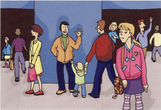 After the film, the first person I saw was Vicky! I said, 'Where were you?' and she answered, 'I came after the film started so I sat behind you.' Then we went to a cafe and had burgers and chips. We talked about the film and then Mum came to take us home. 'Shall we go and see another film next week?' Vicky asked me. 'OK,' I said, 'but you must sit with me!' Vicky laughed.