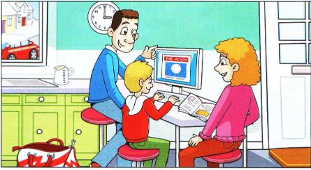 So the family sat around the computer and bought the things they needed and looked at photos.