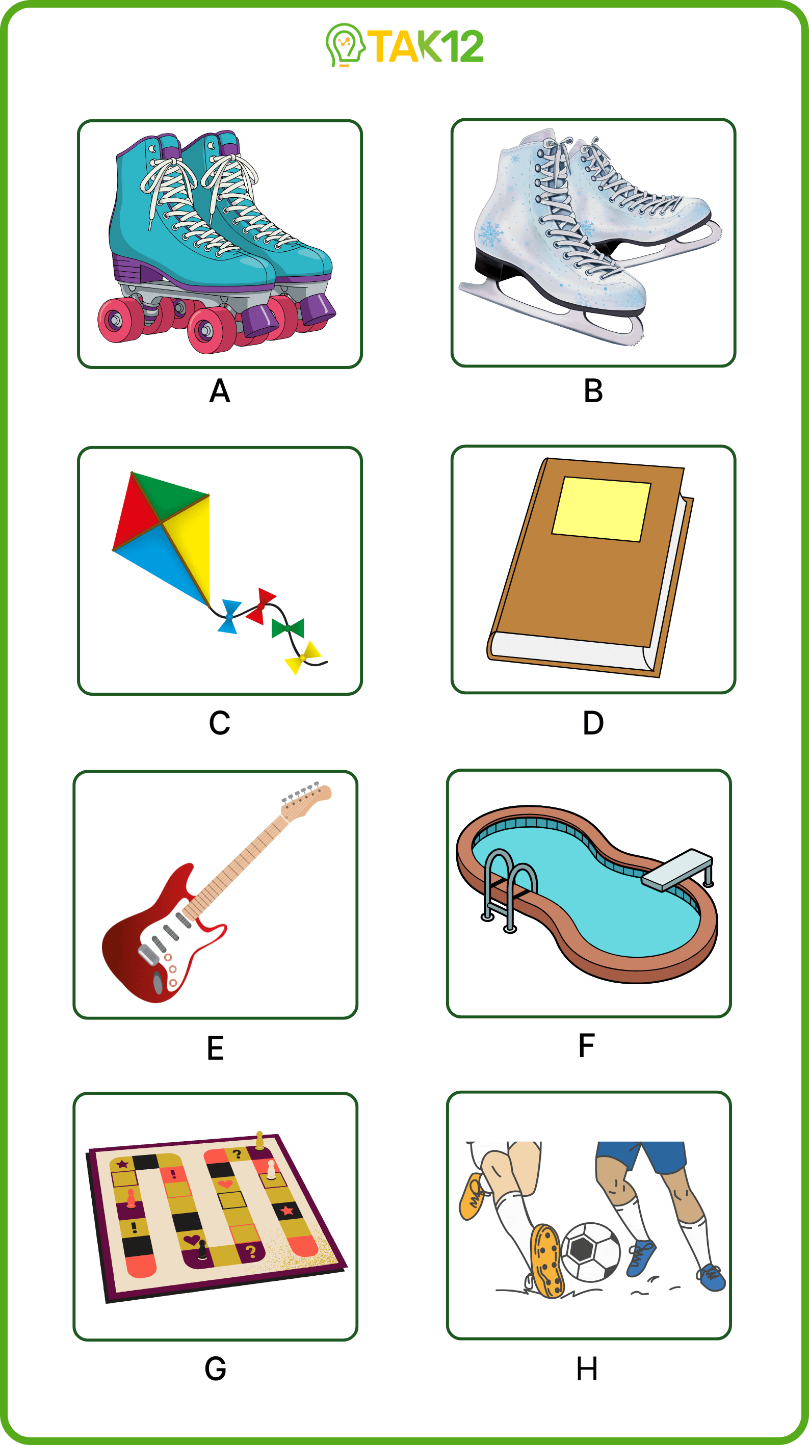 Charlie is telling his Aunt Sally about the weather and about his hobbies. Which hobby does Charlie like doing best in each kind of weather?