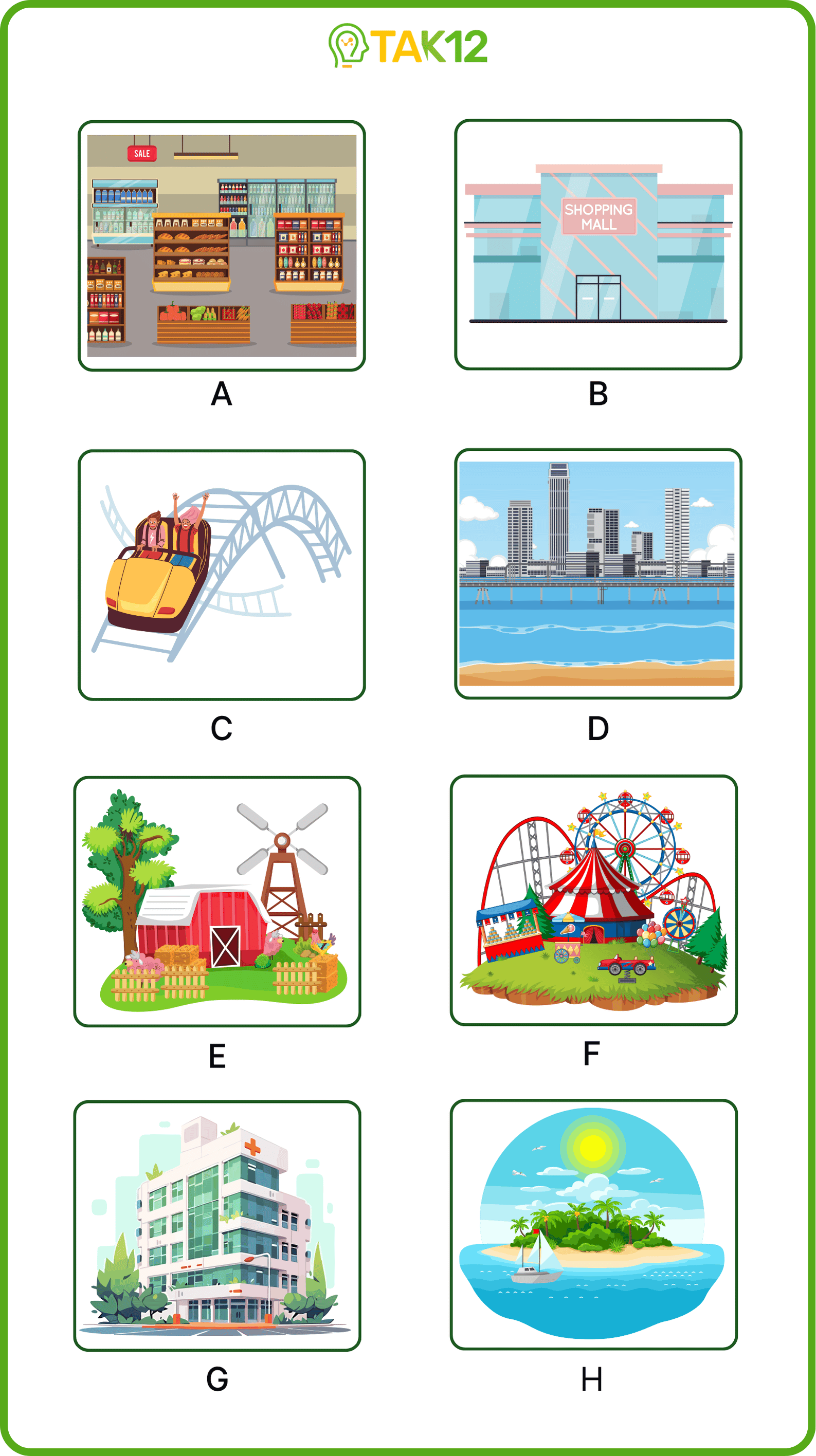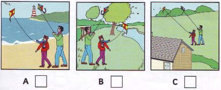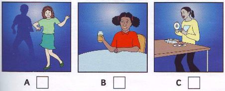 Listen and write a letter in each box. You can listen to the audio twice. There is one example.