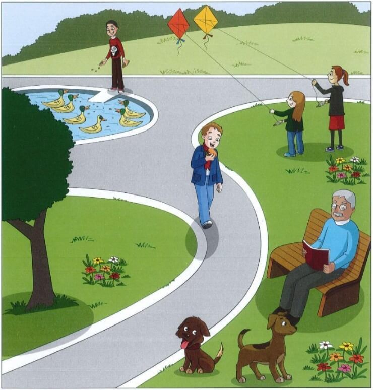 Look at the pictures and read the story. Write some words to complete the sentences about the story. You can use 1, 2 or 3 words.