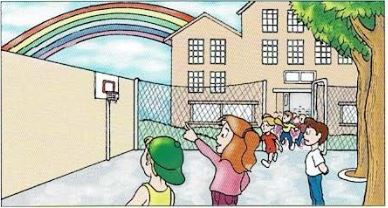 'Look how beautiful that rainbow is!' Kim said to her friends, Mark and Tom.