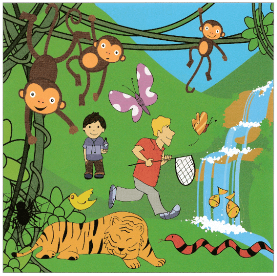 "There was a little girl called Jane who went for a walk in a forest and saw a nice bear called Mr. Sam..."
