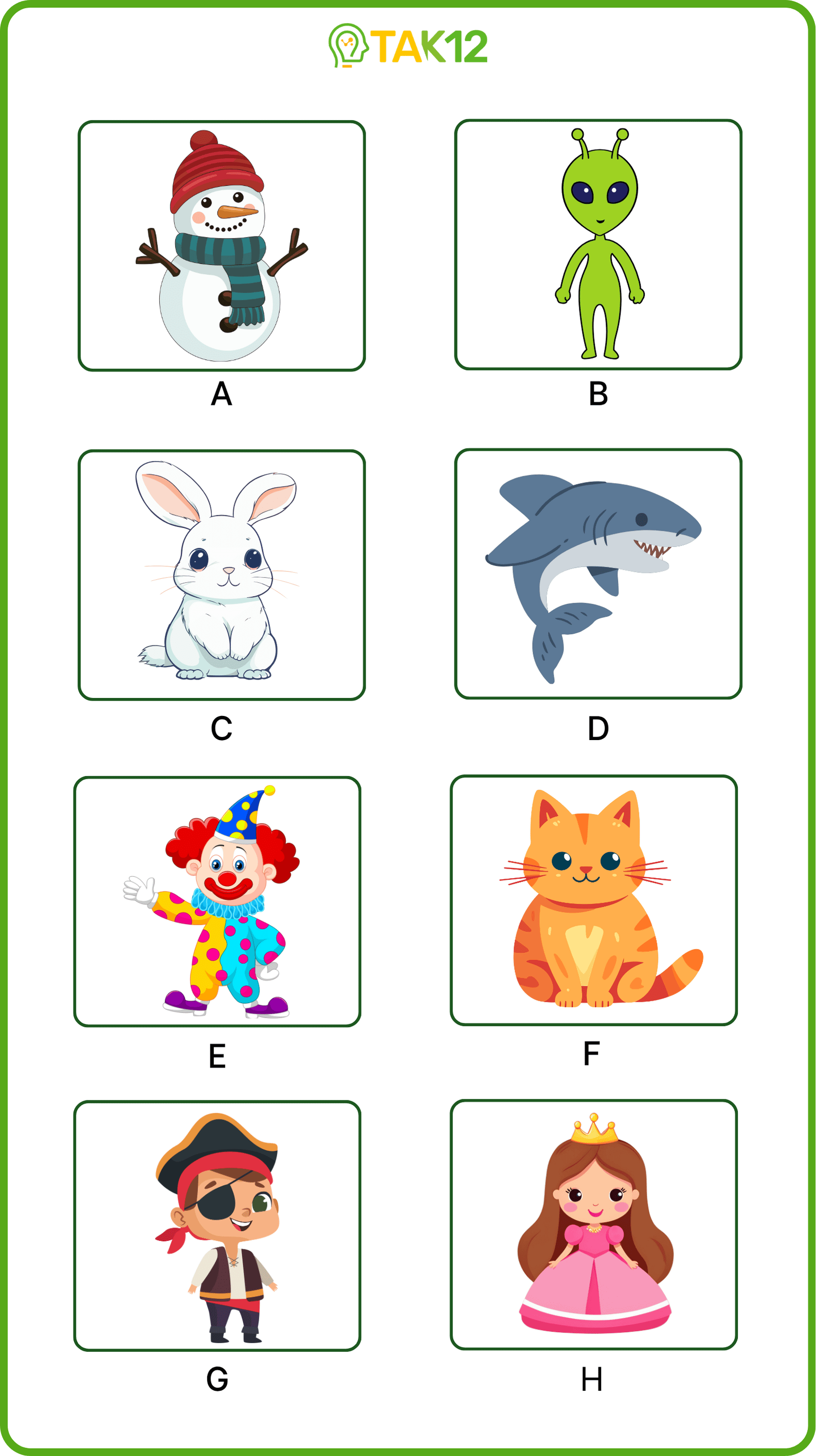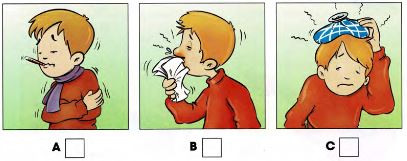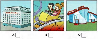 Listen and write a letter in each box. There is one example.