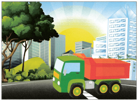 Lorries are bigger than cars and ...smaller... than trains. People drive them on the roads from cities towns and in the countryside. Sometimes you can see lorries with tomatoes or apples in them moving down the road.