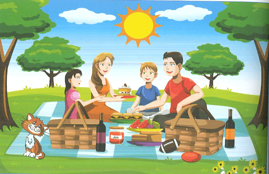 Look at the pictures and read the story. Write some words to complete the sentences about the story. You can use 1, 2 or 3 words.